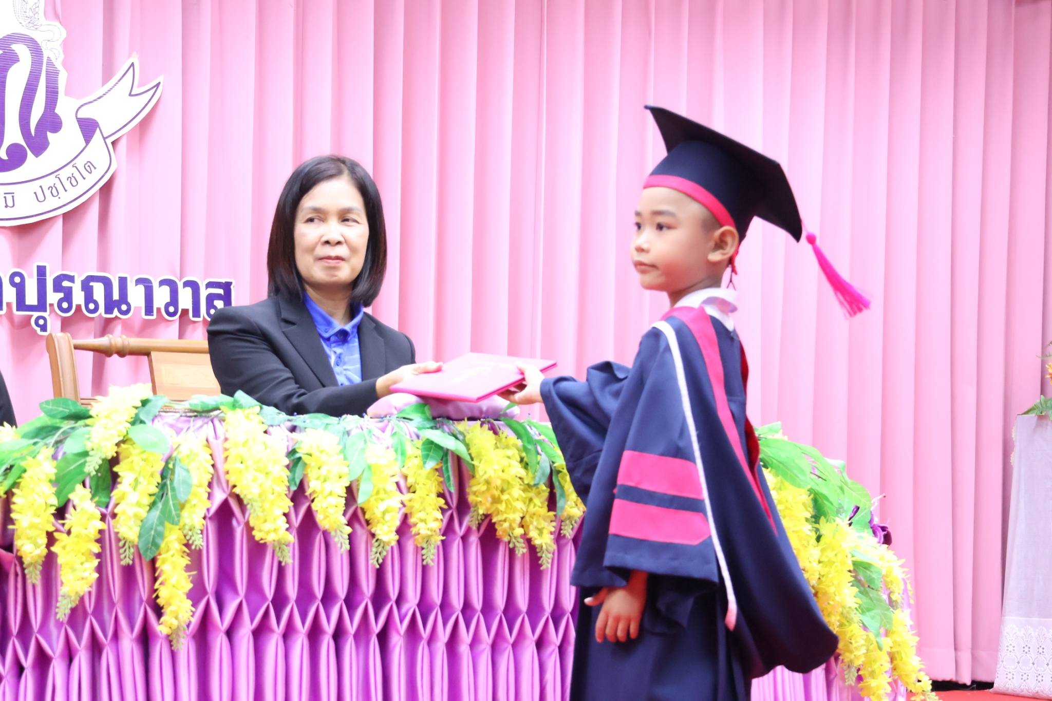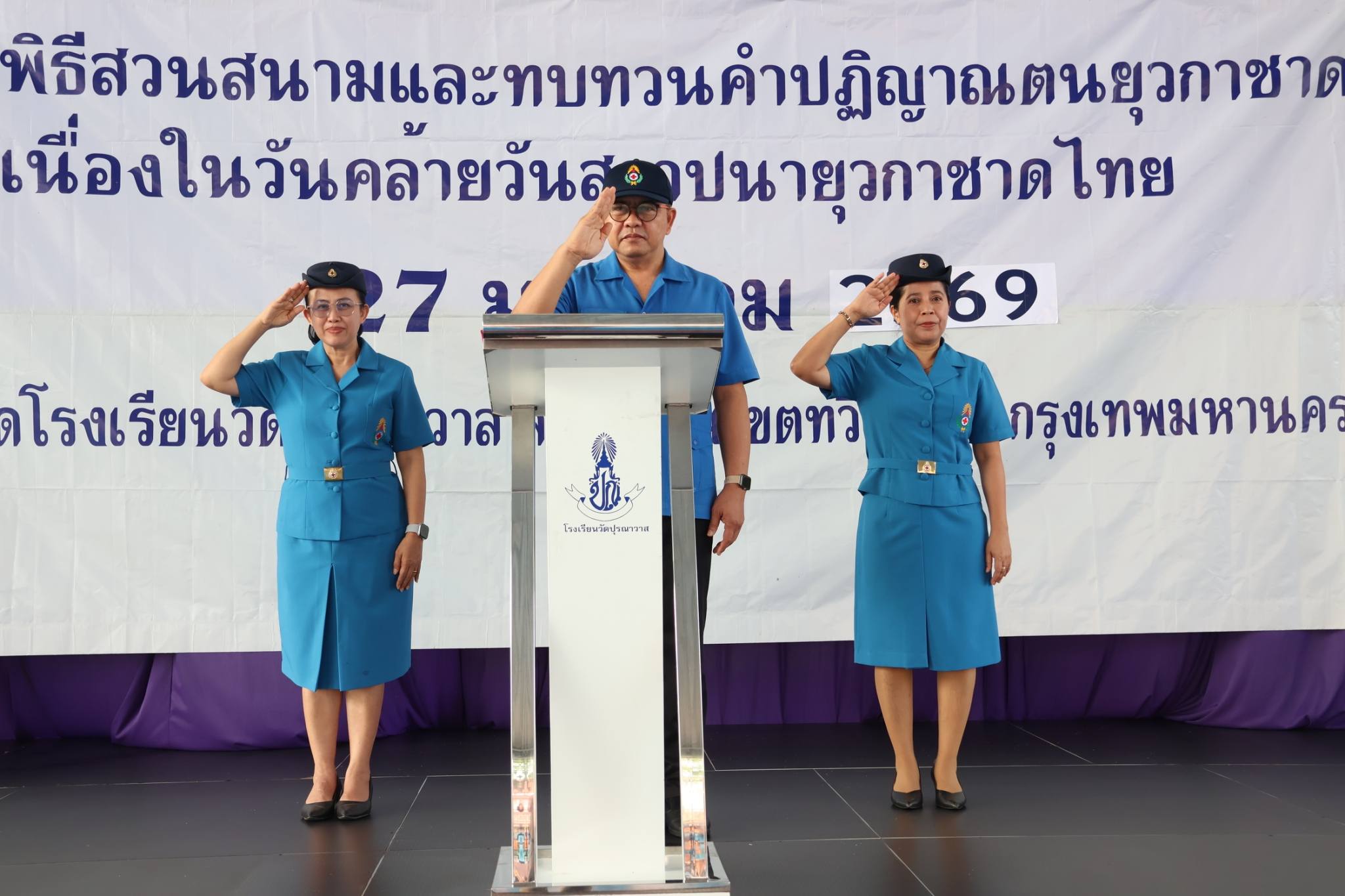 นางสาวอารีวรรณ เพชรเลิศ ผู้อำนวยการสถานศึกษาโรงเรียนวัดปุรณาวาส เป็นประธานเปิดกิจกรรมบัณฑิตน้อย ปีการศึกษา 2568