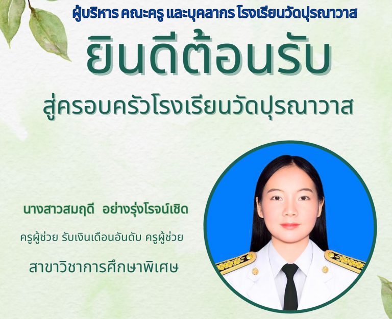 โรงเรียนวัดปุรณาวาส ยินดีต้อนรับ นางสาวอารีวรรณ เพ
